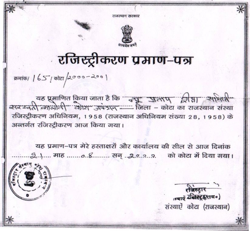 | Address of the Institute | SARASWATI COLONY ROTEDA ROAD LINK RANGPUR ROAD KOTA JN 324002 |